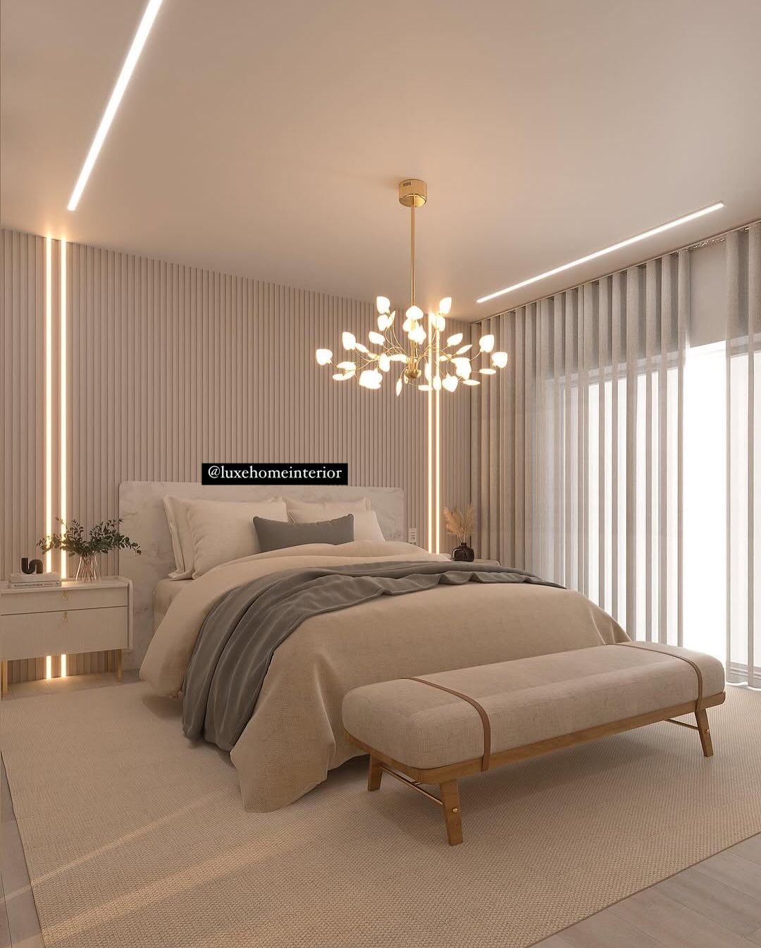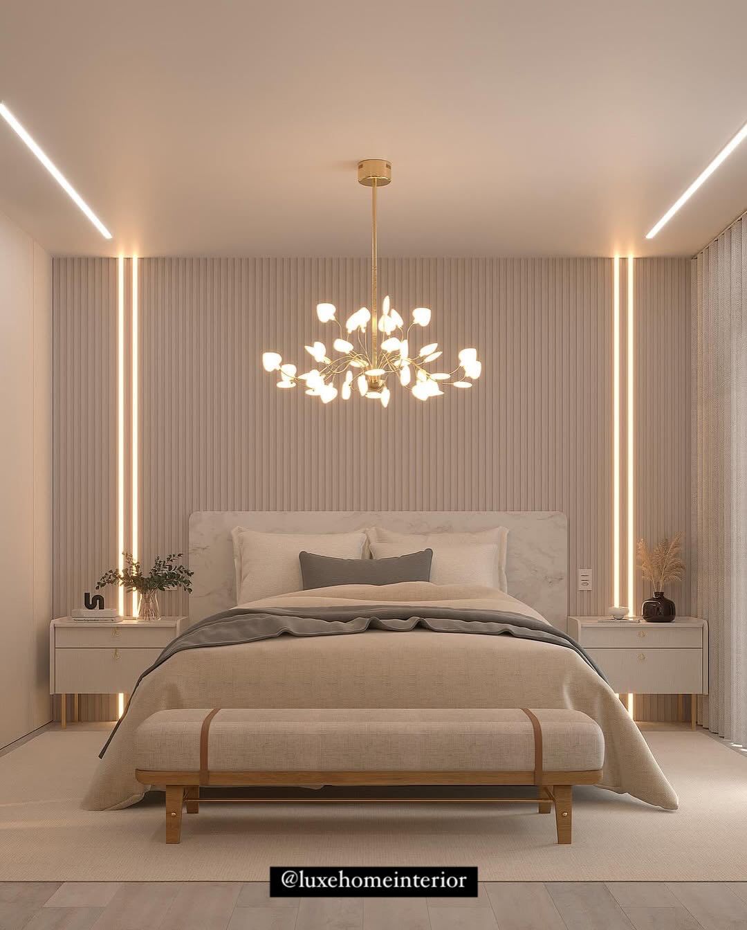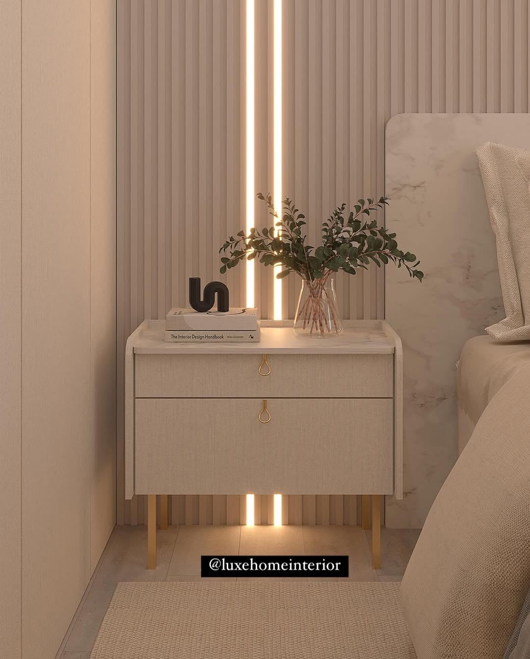 A villa that needed a contemporary, stylish, and soothing interior design solution. Our team used a neutral palette with gold accents and added custom-built furniture.
